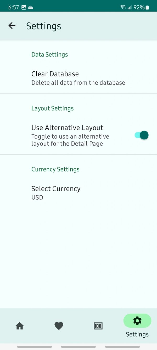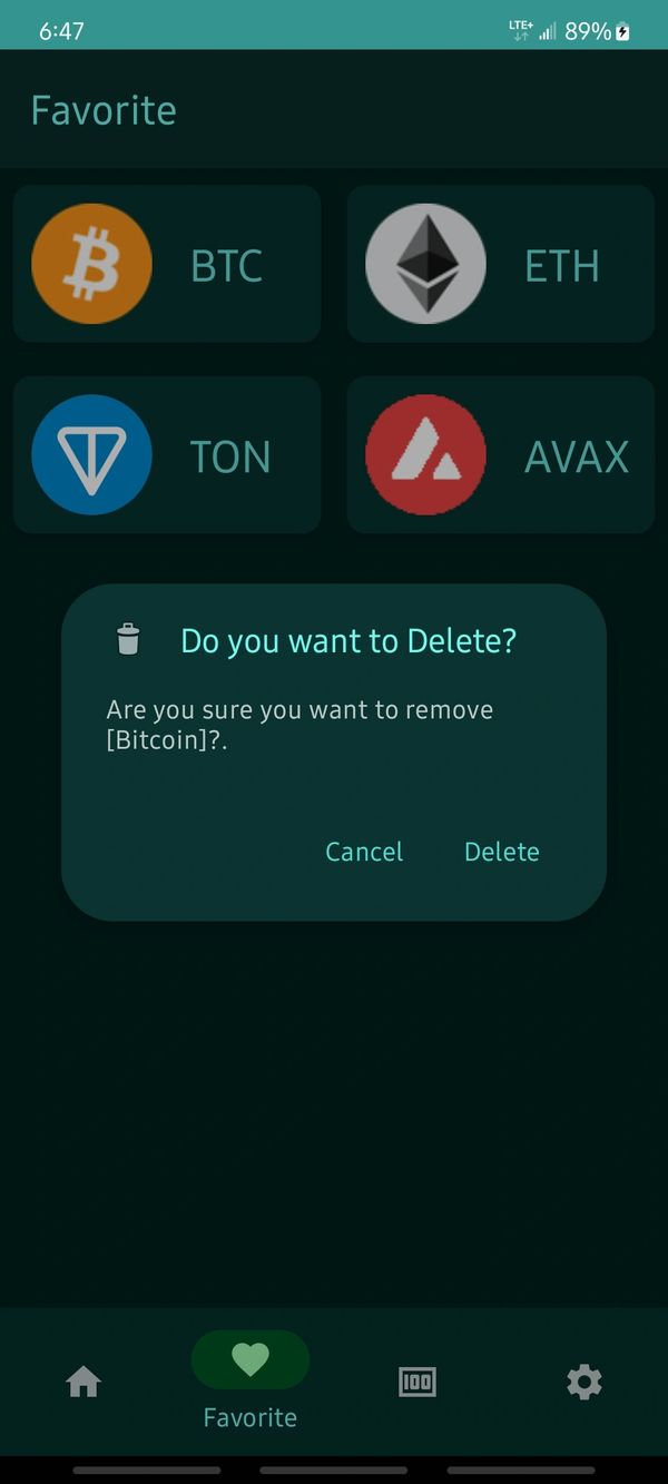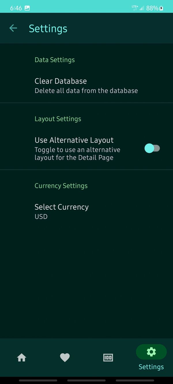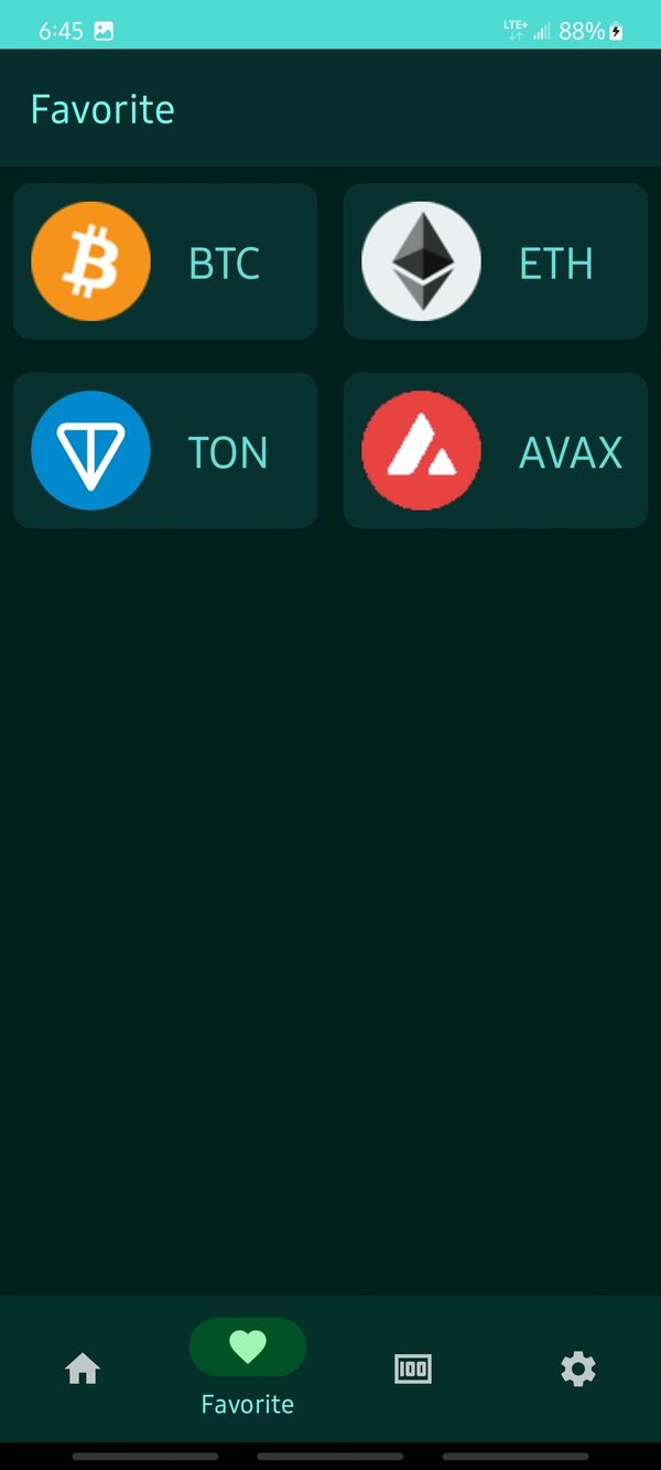 The app provides a seamless and intuitive user experience by offering a convenient swipe-to-refresh feature for the coin list, ensuring that users have up-to-date market data for their investments. In the investment section, users can effortlessly delete specific investments with a long tap gesture. Furthermore, a single tap on a favorite item allows users to delete their saved favorite item, offering a quick and efficient way to manage their favorite's list. The settings section allows the ability to toggle between two different layout for detail screen.
