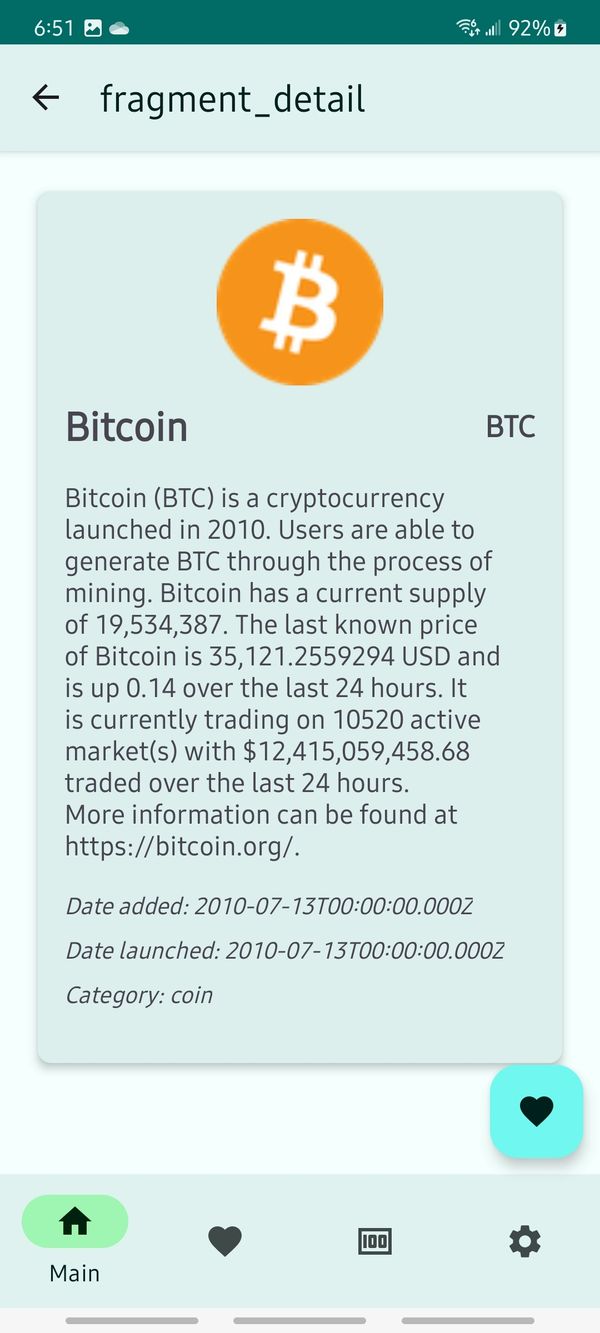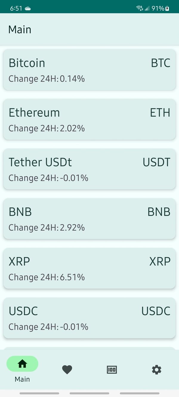 This android application, built with android SDK, leverages the power of the Material 3 to create a dynamic and user-friendly experience. It employs a multi-screen approach, and bottom navigation system to facilitate easy navigation between various functionalities. The app's primary purpose is to empower users to monitor and manage their cryptocurrency investments, achieved through integration with the CoinMarketCap API. Users can input their purchase details, enabling them to compare their initial investment with the current market value, regardless of the wallet they use. Additionally, the app enables users to create a personalized list of favorite currencies, streamlining their access to and focus on specific cryptocurrencies of interest.