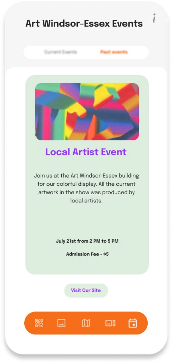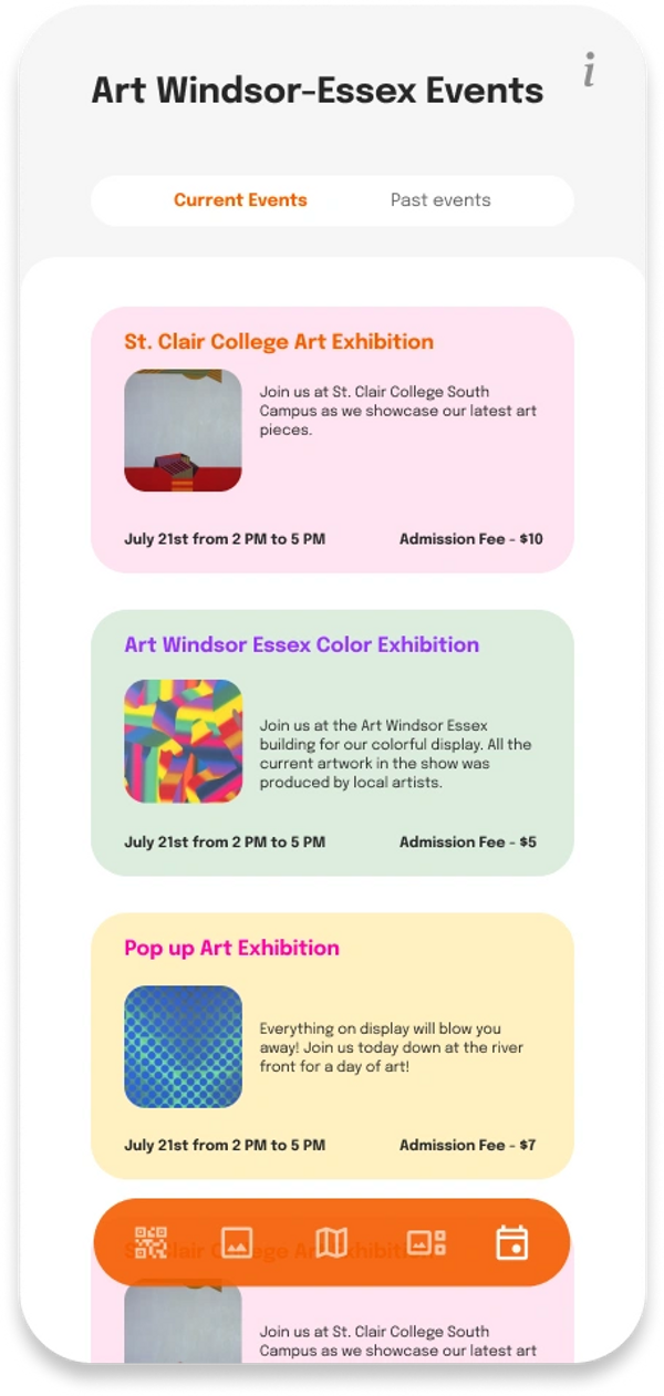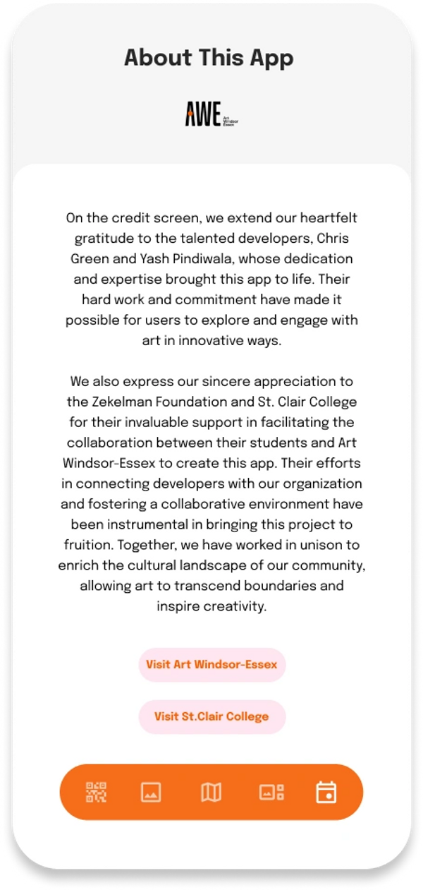 This app enhances how people interact with public art installations and gallery exhibitions throughout Windsor, Ontario. The primary idea is to make art more engaging through the use of QR codes placed on or near artworks. When users scan these QR codes, they can access details about the artwork, the artist. It’s designed to foster a strong connection between users and the arts community, while also promoting events held by local galleries.